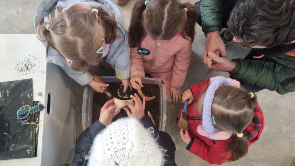 Está demostrado que ver mujeres en roles científicos cambia lo que las infancias creen posible. A eso se lo conoce como el “efecto Scully”, denominado así por el personaje de Dana Scully de la serie ficcional “Los Expedientes Secretos X”, una científica del FBI cuya performance incentivó a muchas mujeres de toda una generación a apostar por carreras y actividades STEM (Ciencia, Tecnología, Ingeniería y Matemáticas) (Link al estudio). Desde Arqueo-escuela trabajamos todos los días para que este efecto se multiplique y supere la ficción: las mujeres del equipo somos arqueólogas reales que, lejos de cualquier estereotipo, mostramos a través de nuestros talleres cómo se construye el conocimiento científico a partir de métodos, preguntas, trabajo de campo, laboratorio y compromiso colectivo.
